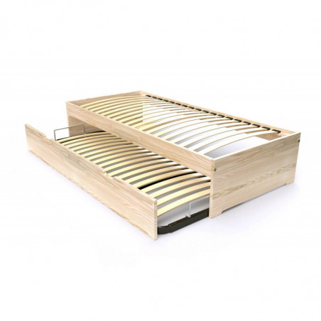 Notre magnifique Lit Gigogne Malo 90x190 en finition brut, pour un maximum de gain de place dans une pièce étroite 😍