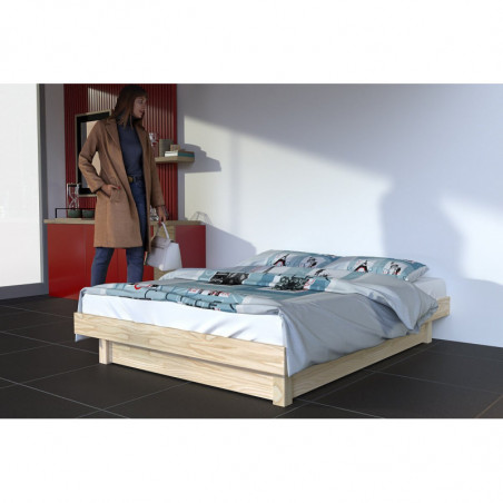Entdecken Sie das Plattformbett 140x190, ein unverzichtbares Stück für eine Schlafstätte, die Komfort und Ästhetik zu einem erschwinglichen Preis vereint. Dank des ausgeklügelten Designs passt die Matratze perfekt in den Rahmen das holzbett, wodurch jedes Risiko von Bewegungen während der Nacht ausgeschlossen wird.