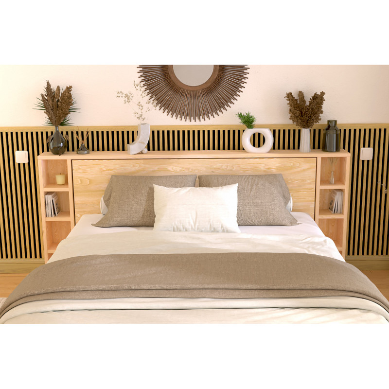 Diese Option für eine Aufbewahrungssäule am Kopfende des Bettes kombiniert Ästhetik und Funktionalität, um den Platz in Ihrem Schlafzimmer optimal zu nutzen und gleichzeitig eine warme Note zu verleihen. Sie ist aus Massivholz gefertigt und passt zu mehreren unserer Modelle, darunter das Happy-Bett, das skandinavische Viking-Bett und das Kastenbett mit Kopfteil. Erhältlich in zwei Größen: für Betten mit einer Breite von 140 cm und 160 cm.