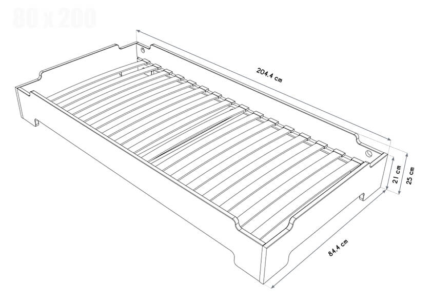 Das stapelbett ist mit Matratzen bis zu einer Dicke von 16 cm kompatibel und bietet eine sichere Stapelbarkeit ohne das Risiko, Ihre Matratzen zu beschädigen. Für einen höheren Komfort empfehlen wir unsere Marly-Matratze, die perfekt auf unser stapelbett abgestimmt ist. Ein Abstand von 2 cm zwischen den Betten sorgt außerdem für eine gute Belüftung.