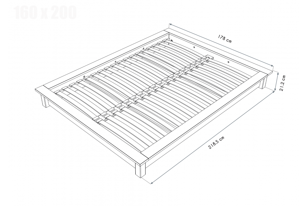 Según la norma EN 1334, los colchones y las bases deben ser hasta 2 cm más pequeños que las dimensiones indicadas. Colchón recomendado: 158x198 cm