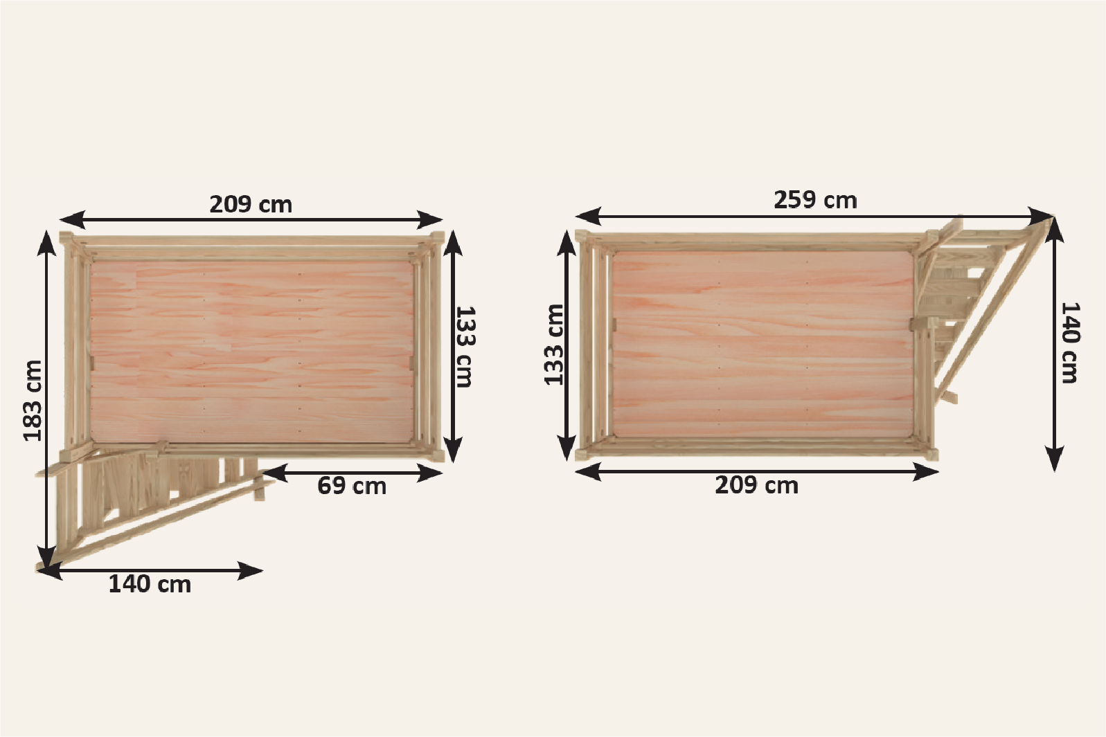 2 otras opciones de acceso están disponibles: escalera inclinada y escalera en cubo, para adaptarse al espacio disponible en su dormitorio y a sus preferencias. El acceso puede configurarse en el lado corto o largo de la cama alta, a la izquierda o a la derecha, lo que ofrece una gran flexibilidad.