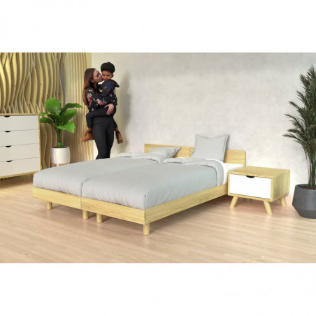 Cama gemela de madera maciza con cabecera Twin - 80x200