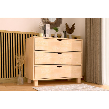 Notre commode en pin massif se distingue par son design attrayant et sa robustesse, tout en étant respectueuse de l'environnement et de votre santé. Pour garantir un intérieur sain, nous avons choisi, pour notre commode bois, des finitions à base d'eau, exemptes de solvants et de composés organiques volatils (COV).