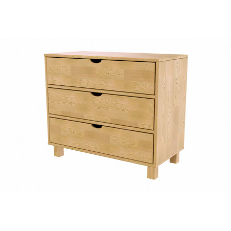 Notre commode en pin massif se distingue par son design attrayant et sa robustesse, tout en étant respectueuse de l'environnement et de votre santé. Pour garantir un intérieur sain, nous avons choisi, pour notre commode bois, des finitions à base d'eau, exemptes de solvants et de composés organiques volatils (COV).
