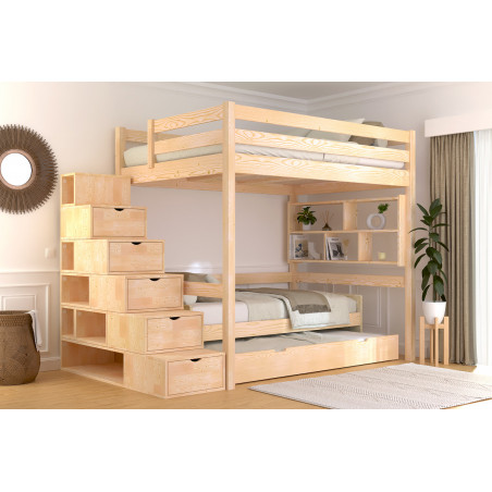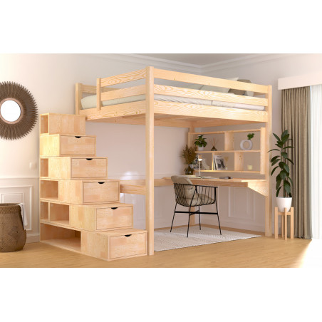 Lit mezzanine bois 140x200 Sylvia avec escalier cube