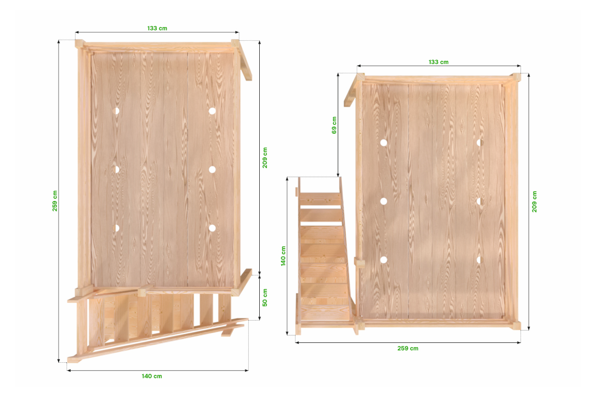 200x209x133 cm / 225x209x133 cm (version rehaussée)
