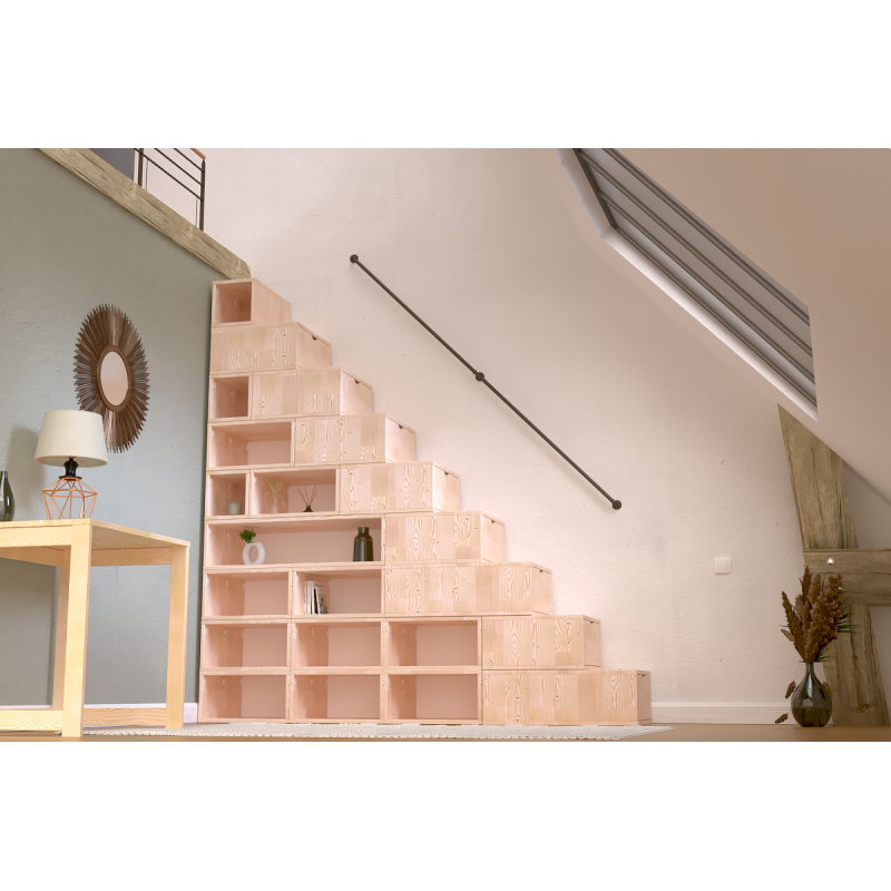 Discover our 225cm high staircase cube, a fashionable and modern option for maximising space at your place.