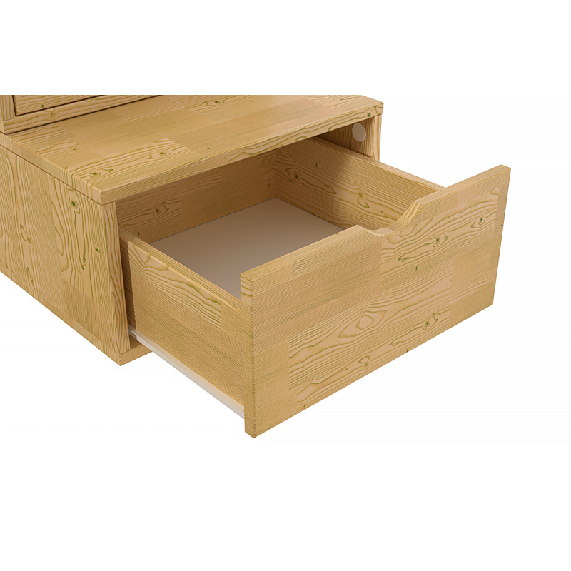 Some wooden parts are finger-jointed (visible on raw and natural varnish finishes). The base of the cubes and the underside of the drawers are in isorel (1 white side & 1 brown side). Drawers on metal runners.
