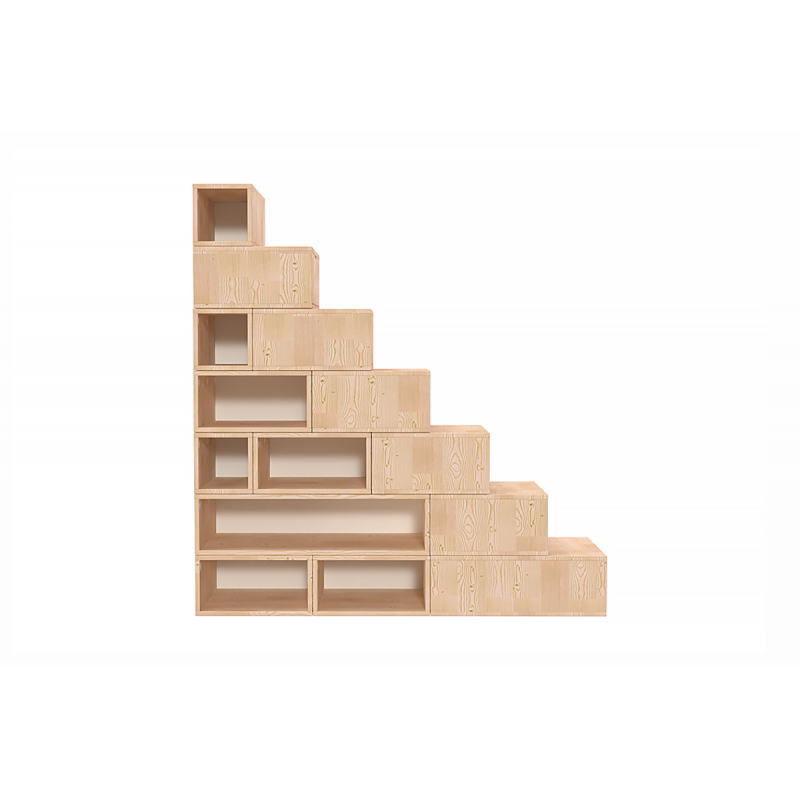 Safety information: For heights of 175cm and above, it is imperative that the staircase with storage is placed against a wall and that the cubes are securely fastened together. Please note that the fixings needed to assemble the cubes are not included, and the cubes are not pre-drilled, allowing you to customise your staircase with storage to your own preferences.