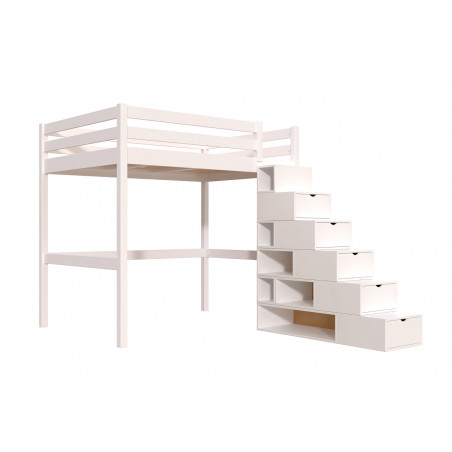 High sleeper bed 140x200 Sylvia with staircase with storage Color-White€2,250.00 -