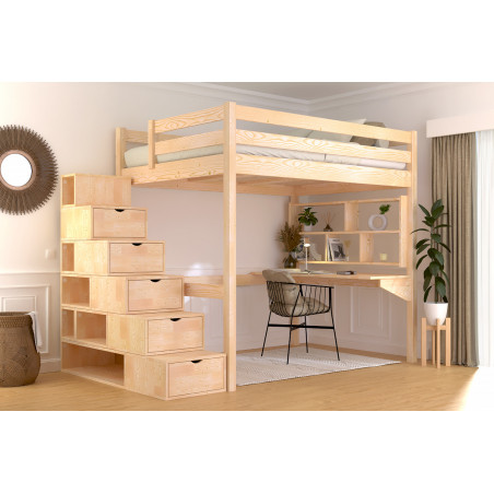 High sleeper bed 140x200 Sylvia with staircase with storage Color-Gross (unvarnished)€1,807.00 -