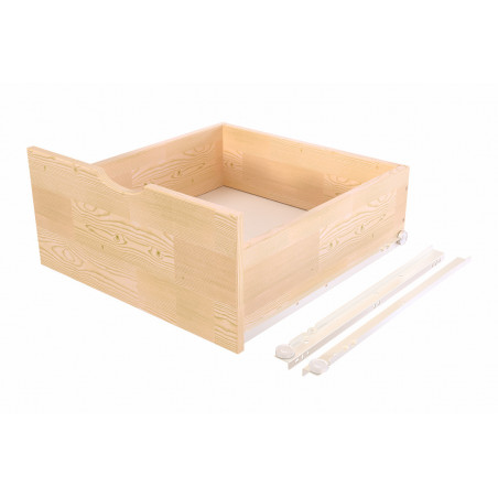 Discover our wooden storage drawer, an essential addition to your home organisation! Carefully crafted from solid pine, this sliding drawer combines sturdiness and functionality to meet your storage needs.