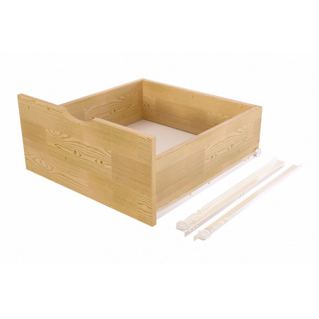 Discover our wooden storage drawer, an essential addition to your home organisation! Carefully crafted from solid pine, this sliding drawer combines sturdiness and functionality to meet your storage needs.