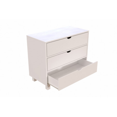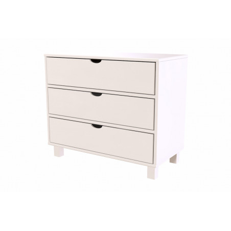 Con i suoi 3 cassetti spaziosi, questa cassettiere di legno offre un ampio spazio per riporre vestiti, accessori o altri oggetti personali.