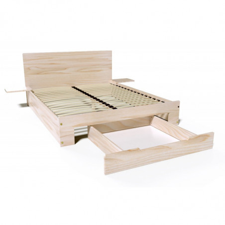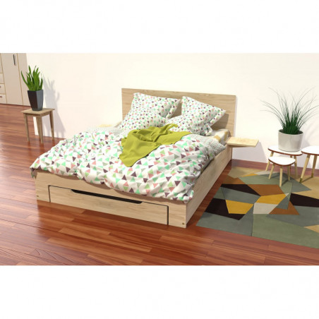 Con la sua testata rinforzata nella parte posteriore, il letto 140x200 Happy offre un sostegno ottimale alla schiena, garantendo un comfort superiore, ideale per gli adulti. Questo letto in legno è disponibile in 6 colori diversi, ognuno dei quali è applicato con una vernice ecologica a base d'acqua che non contiene solventi nocivi o emissioni di composti organici volatili (VOC), garantendo un ambiente di riposo sano e rispettoso della vostra salute. Che preferiate le tonalità neutre o i colori più vivaci, il letto in legno Happy si integrerà perfettamente nella vostra camera da letto. Per alcune finiture, come il grezzo e la vernice naturale, noterete che alcune parti in legno del nostro letto 140x200 sono giuntate a pettine. Il fondo del cassetto è in melamina da 16 mm.
