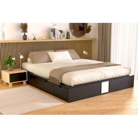 Da oltre 15 anni, il nostro letto matrimoniale con contenitore è rinomato per la sua notevole robustezza, che combina una funzionalità ingegnosa con un comfort e una durata eccezionali. È una soluzione pratica ed elegante per ottimizzare lo spazio nella vostra camera da letto.