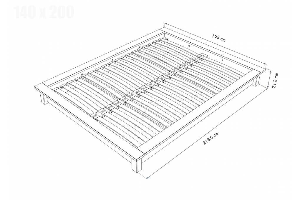 Il letto matrimoniale Solido è dotato di una rete a doghe in legno, composta da 36 doghe multistrato di 8 mm di spessore, che offrono un sostegno solido e uniforme al materasso. L'incavo di 8 cm assicura che il materasso rimanga in posizione, garantendo un sonno confortevole.