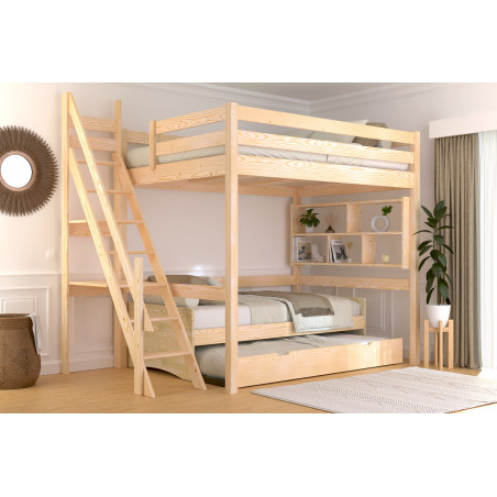 Il letto a soppalco Sylvia, realizzato in pino massiccio delle Landes proveniente da foreste controllate, garantisce un ottimo riposo notturno. Disponibile in 6 finiture standard : grezzo (senza vernice), vernice naturale, miele, bianco, nero e grigio ; e in 1 version bicolore (bianco/ross), questo modello si adatta a qualsiasi stile di interni. Realizzato con una vernice a base d'acqua che non contiene solventi o VOC, il nostro letto a soppalco è una scelta ecologica e sostenibile per arredare la vostra camera da letto.