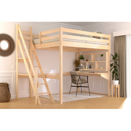 Letto a soppalco in legno Sylvia 140x200 con scala del mugnaio