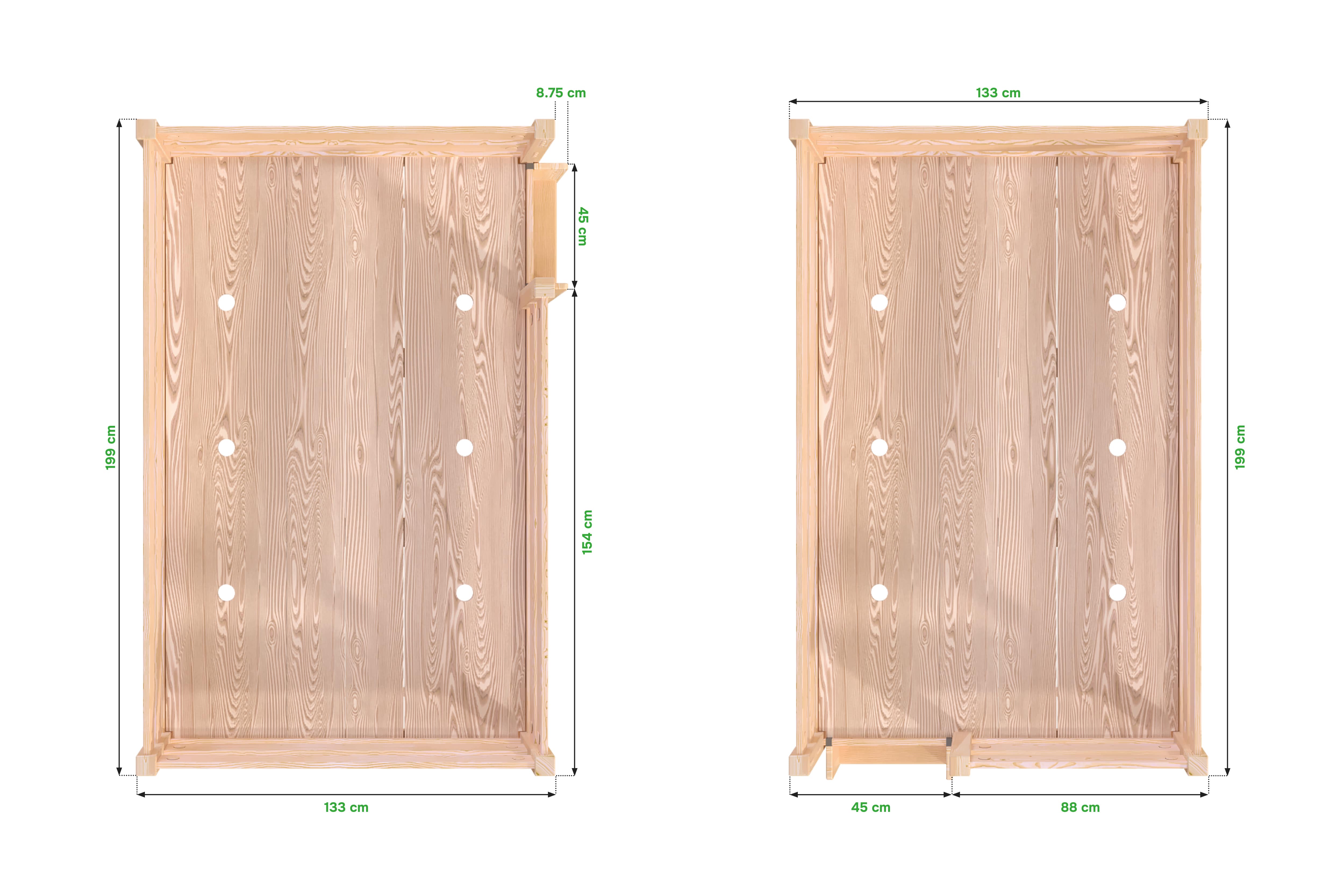 200x199x133 cm / 225x199x133 cm (versione rialzata)