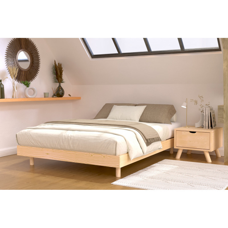 Realizzata in pino massiccio delle Landes, questa rete a doghe è progettata per garantire una notevole durata. È rinforzata da tre traverse e dotata di quattro piedini alti 20 cm, di 6 cm di diametro, e di un piedino centrale per garantire una perfetta stabilità al vostro letto in legno. Modificare l'altezza di questi elementi comprometterebbe l'equilibrio del mobile e annullerebbe qualsiasi garanzia in caso di difetti. Le doghe multistrato, larghe 53 mm e spesse 8 mm, assicurano un comfort ottimale.