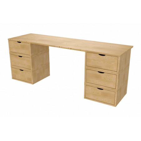 Per alcune finiture, come il grezzo e la vernice naturale, noterete che alcune parti del legno sono giuntate a pettine, sulla nostra scrivania legno. La base dei cubi e il fondo dei cassetti della nostra grande scrivania moderna in legno sono realizzati in isorel bianco/marrone. I cassetti sono dotati di guide metalliche che garantiscono un movimento fluido e duraturo ad ogni utilizzo.